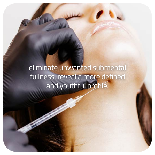 Kybella® works by dissolving fatty tissue and fat cells, which your body will filter through its normal metabolic process. As the body expels the damaged cells, chin fat will reduce, resulting in a slimmer and more defined chin and jawline for a more contoured, youthful look.